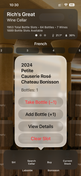 My Wine Cellar helps you organize your collection by rack location, track bottle counts, add label photos, and keep notes so you remember what you loved.